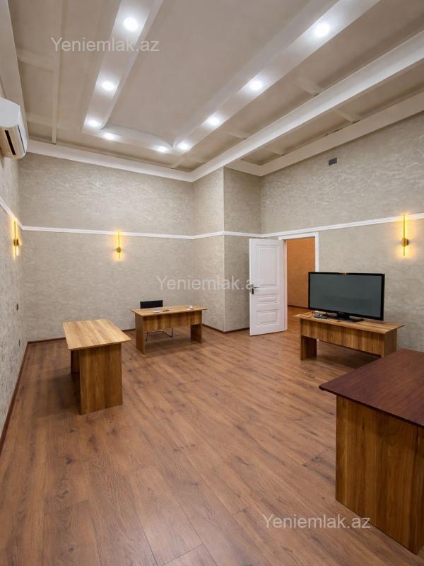 N.Nerimanov heykelinin yaninda 10 mertebeli binanin 1 ci mertebesinde ayri girisi olan 90 kv 3 otaqli ofis icariye verilir.Ofisin suyu isigi istilik sistemi kondisoneri movcutdur,ofis cox elverisli erazide yol kenarinda yerlesir
