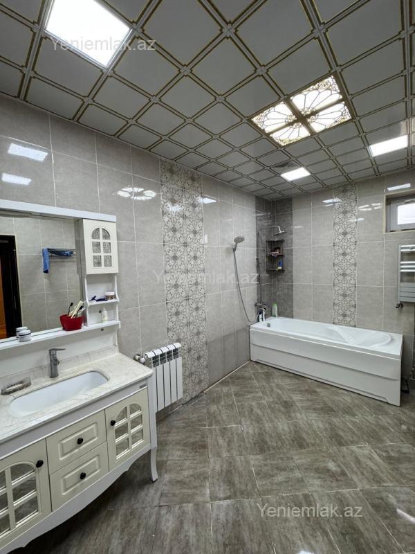 Ev Masazırda M.Ə.Rəsulzadə küçəsində yerləşir. Paket kupçadır. İpotekaya tam yararlıdır. 6 sot torpağın içində tikilib. 3 mərtəbədir. Birinci mərtəbə zirzəmi kimi istifadə olunur. 9 tumbo üzərində və monolit betonla tikilib. Həm mərtəbələrin arası, həm zirzəminin polu həm də damın altı monolit betonla tikilib. Yaşayış sahəsi 6 otaq, 1 iri mətbəx, 4 sanuzel, 1 aynabənddən və zirzəmidə 6 otaqdan ibarətdir. Əlavə olaraq həyətdə tam təmirli mətbəx (bisetka ilə birlikdə), hamam (isti su çəkilib, təmir olunub) və 12 tonluq su anbarı var. Evin özü ümumilikdə yelçəkəndir, 4 tərəfə pəncərəsi var. Məktəbə, avtobus dayanacağına yaxındır. Bütün kommunal sistemlər quraşdırılıb. Ev qismən əşyalı satılr. Qiymətdə güzəşt oluna bilər