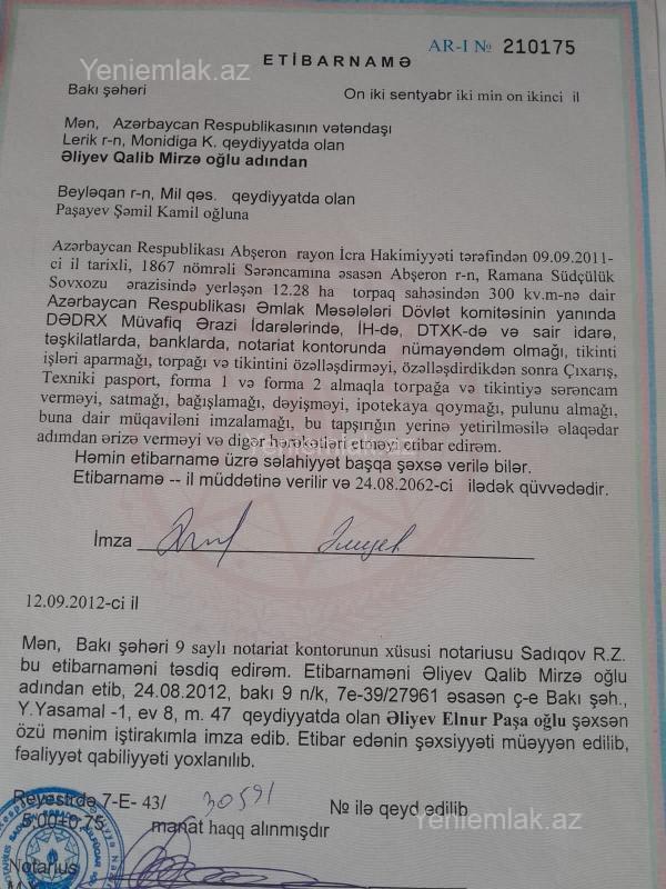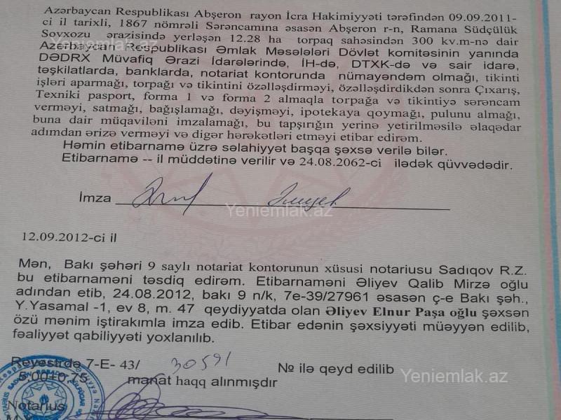 Etibarnamə ilə satılır. Bələdiyyə çıxarışı almaq mümkündür,500 azn xərci var. Real müşdəriyə endirim olunacaq