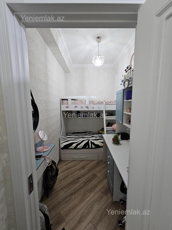 Sumqayıt şəhəri 1-ci mikrorayon yeni tikili 10/10 81 m2 2 otaq 3 otağa düzəlmə 1 ədəd bağlı can balkonu mətbəx mebeli kombi sistemi dəhlizdə qolablar isti döşəməsi plastik pəncərələr şəhərə və dənizə panorama tam təmirli kupçalı mənzil