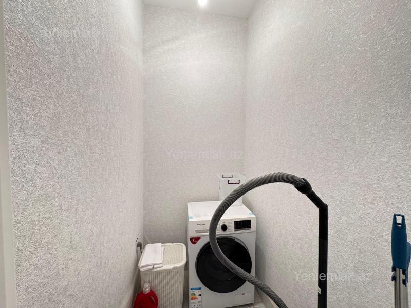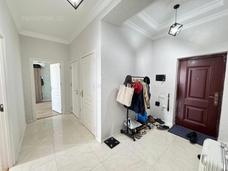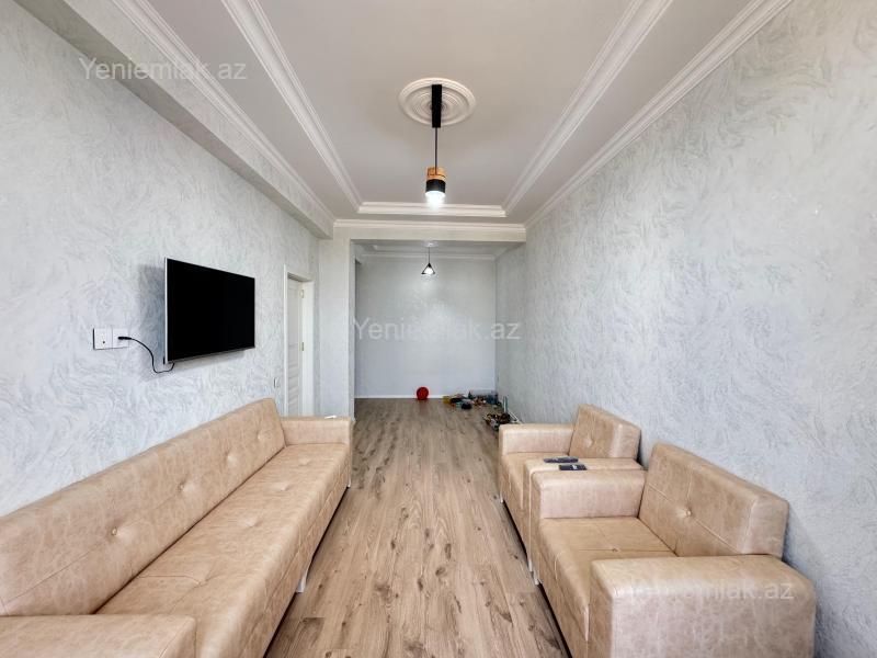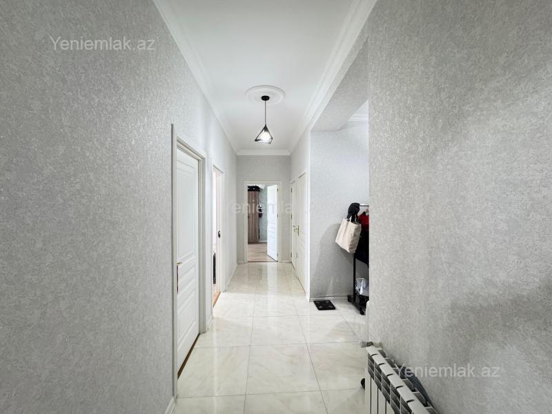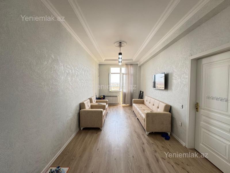 Bakı Müasir yaşayış kompleksində, 10 mərtəbəli binanın 6-cı mərtəbəsində yeni elit, sakit binada qanuni 3 otaqlı 110 kv.m sahəli mənzil satılır. 2 yataq otağı, 1 zal və 1 mətbəx.2 ədəd balkonu var. Mənzildə 2 ədəd Hamam-tualet var, biri yataq otağında, digəri isə ümumi istifadə üçün. Və əlavə paltaryuyan və digər məqsədlər üçün balaca bir otaq da var. Mənzil tam təmirlidir, gir-yaşa mənzildir. Təmirdən sonra az yaşayış olub. Qaz, su, işıq xətləri və sayğacları, kombi sistemi və otaqlara ratoatorlar quraşdırılıb, hər biri işlək vəziyyətdədir. İnteryer müasir dəbə uyğun təmir edilmişdir. Mənzilin hamamında duş kabina yerləşdirilmişdir. Yeni alınmış mebellər, yeni mətbəx mebeli, soyuducu, 109 ekran smart Televizor, paltaryuyan, pərdələr, yəni bütün əşyalarla bir yerdə satılır. Kondisioner yoxdur bir tək. Mənzil əsas prospektə baxır, önündə bina yoxdur yəni. Binanın həyəti təmiz, səliqəlidir. Maşınların saxlanılması üçün hər binanın qarşısından parking yerləri ayrılmışdır.