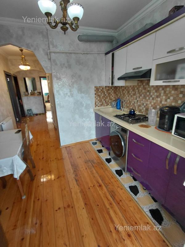 9-cu mikrorayon, 5/4 leninqrad layihəli 3 otaqlı mənzil, orta blok, tam təmirli, kombi, mətbəx mebeli, qiyməti 140000