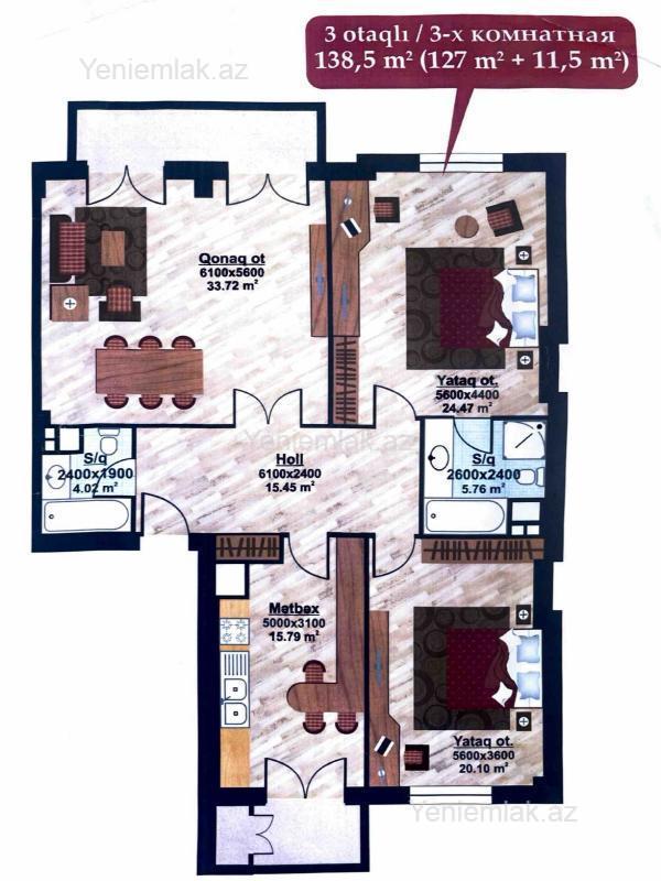 Ag Sheherde Suleyman Vezirov kucesinde 7 mertebeli yasayis kompleksinin 2-ci mertebesinde umumi sahesi 138.5 kvm olan 3 otaqli temirsiz menzil satilir.Elektrik ve santexnik isleri gorulub.Sened muqaviledir. Shirketin xidmet haqqi 1% teskil edir.
