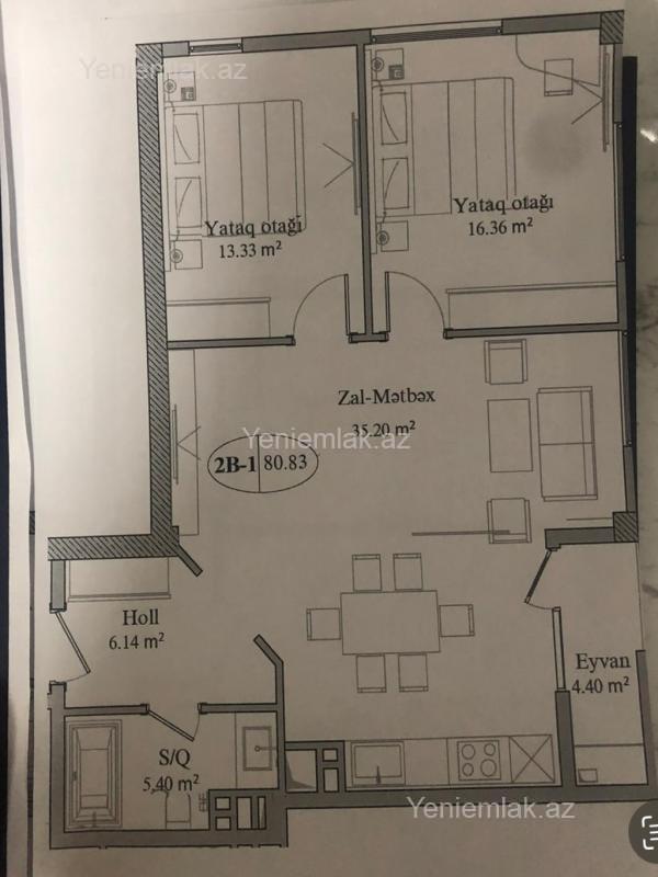 3 otaq 81 m2 13 / 11 Mərtəbə Kupçasız