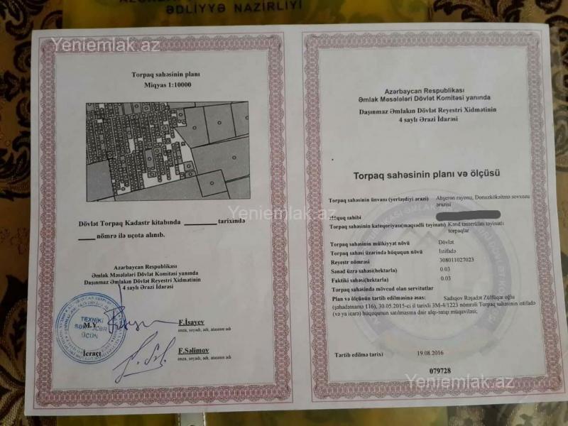 Suraxanı rayonu, Yeni Suraxanı ərazisində (keçmiş Binə ticarət mərkəzi, Logistika Mərkəzinin yaxınlığı) təcili olaraq 3 sot torpaq sahəsi satılır. ? Ölçü: 12×25 m ? Sənəd: Çıxarış (kupça), bütün sənədlər öz adımadır ? Kommunikasiya: Su və işıq xətti çəkilib, qaz xətti çəkilir ? Ətraf: Yaşayış var, sakit və inkişaf edən ərazi ? Hasar: Bir divar (25 m) hazırdır ? Dayanacaq: 15 dəqiqəlik piyada məsafəsi ? Koordinatlar: Abşeron İcra Hakimiyyəti tərəfindən təsdiqlənib — naviqatorla asan tapılır ? Qiymət: 13 000 AZN (3 sotun tamamı) ? Torpaq özümə məxsusdur, vasitəçi deyiləm. ? Ərazi sürətlə inkişaf edir, qiymətlər hər gün qalxır. Real alıcı üçün münasib endirim olacaq. Xahiş olunur, yalnız ciddi şəxslər əlaqə saxlasın.