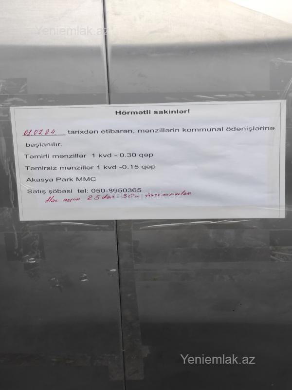 Sumqayıt şəhəri, Akasya Park Yaşayış Kompleksində yerləşən 17 mərtəbəli A binasının (şəhərin giriş tərəfindəki) 15-ci mərtəbəsi, ümumi sahəsi 113.1 m² olan qanuni 4 otaqlı, dəhlizdə 2 və əlavə olaraq valideyn otağında da 1 sanuzeli olan super panoramalı, təmirsiz(podmayak) mənzil satılır. Binada qaz, su, işıq daimidir. Mənzil yelçəkəndir və bina çox əlverişli yerdə yerləşir. Bakıya gedib-gələn bütün marşrutlar ərazidən keçir. Ətrafda bir çox iaşə obyektləri (Mcdonalds, Pizza-Mizza, Bravo Market, tekstil və məktəbli dükanları, gözəllik salonları və s.) var. Yeraltı parkinq mövcuddur. Sənəd müqavilədir. İnşaallah 2026-cı ilin yayına qədər kupça da veriləcək. Həmçinin, istəyən asanlıqla 2 otağın arasını açaraq geniş 3 otaqlı da edə bilər. Yatırım üçün də ideal əmlakdır. Bu binalar Sumqayıt şəhərinin simvolu (Bakının Flame towerləri kimi) olacaqdır. Əmlak sahibi özüməm. Sumqayıtda 3-cü mikrorayon perimetrində yerləşən ( 140 m²-dən böyük ) yeni tikili mənzillə barter də mümkündür. Real alıcı ilə qiymətdə razılaşmaq olar