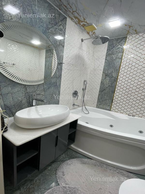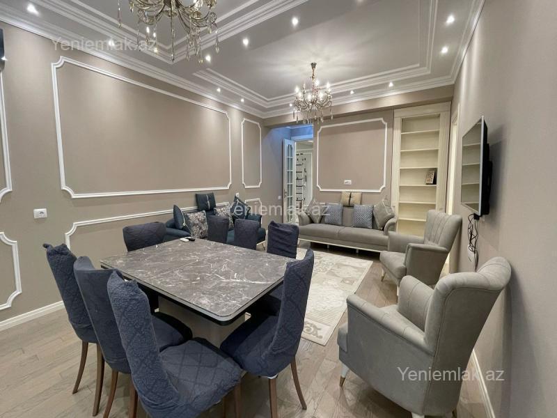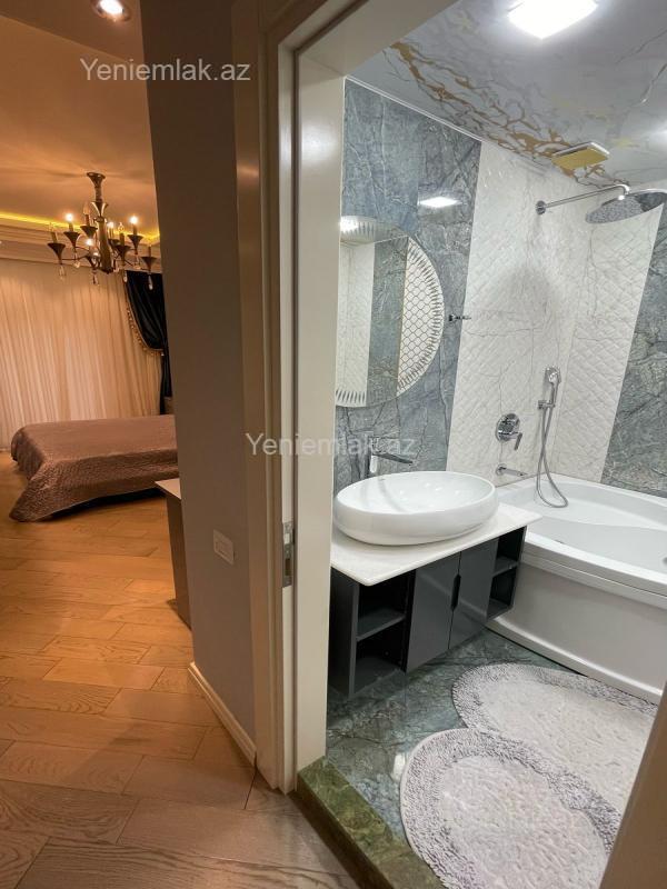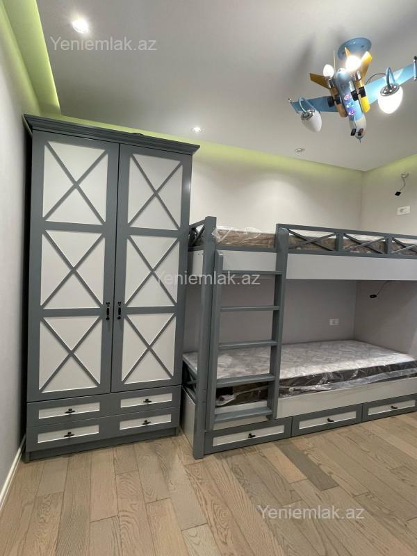 BÖYÜK TERRASLI MƏNZİL. TƏCİLİ SATILIR! Şəhərin elit yerlərindən olan Elmlər Akademiyası m/st yaxınlığında, Almaz Park və Renessans Palasla üzbəüz Nazirlər Kabinetinin əməkdaşları üçün tikilmiş elit yaşayış kompleksində, yüksək keyfiyyətli materiallardan istifadə olunmuş super təmirli 4 otağa düzəldilmiş böyük terraslı mənzil bahalı əşyalarıyla birlikdə satılır. Mənzil 4-cü mərtəbədə (yaşayışın 1-ci mərtəbəsi) yerləşir, sahəsi 140 kv/m, 3 yataq otağı, 1 zal, 2 sanuzeldən (biri yataq otağında yerləşir) ibarətdir, 2 uşaq otağına giriş zaldandlr. İsti pol və kombi sistemi mövcuddur. Mənzilin təmirinə söz ola bilməz, iki ilə yaxindir təmir olunub və premium təmir olunub. Mənzil xüsüsi montaj olunmuş mebellər və şəkildəki bütün əşyalarıyla birlikdə satılır. Əlavə olaraq mənzildən birbaşa sahəsi 200 kv.m-dən çox olan binanın terrasına çıxışı var və yalnız mənzil sahibinin istifadəsinə icazə verilib. Mənzilin qonaq və yataq otaqlarından terrasa keçid üçün qapılar qoyulub (bəzi qonşular artıq terrasin üstünü və ətrafını bağlayib mənzilə qatib). Yay aylarında uşaqlar üçün oynamağa və oturub dincəlməyə çox yaxsı imkan var. Mənzilə məxsus 2 mərtəbəli böyük yeraltı parkinqdə liftə yaxın mənzilə məxsus qarajı da var, qaraj qiymətə daxil deyil. Binanin qazı suyu işığı 24 saat fasiləsiz verilir. Bina çox dözümlü materiallardan tikilib, plastik sistemi izo sistemnən təchiz olunub. Yaşayış kompleksinə 2 ayrı küçədən giriş-çıxışı və ətrafında digər elit yaşayış kompleksləri var. Blokda 4 lift var.Elmlər Akademiyası m/st və yasamal parkına piyada 5-10 dəqiqəlik məsafədə yerləşir. Aylıq 2500-3000 manata icarəyə vermək mümkündür. Çıxarış yaxın zamanda veriləcək. Bu ərazidə bu qiymətə belə bir mənzil yoxdur.