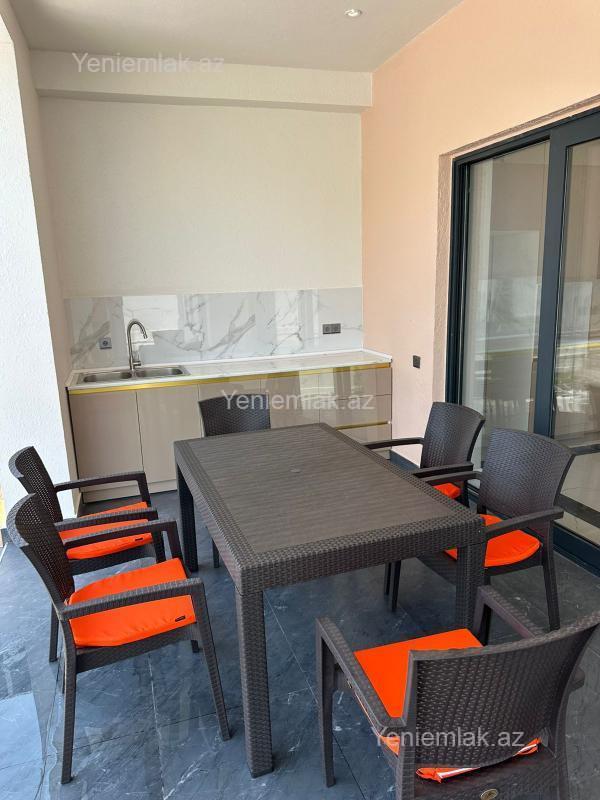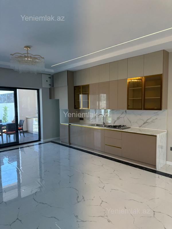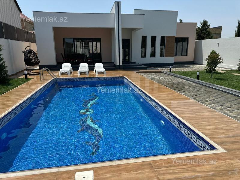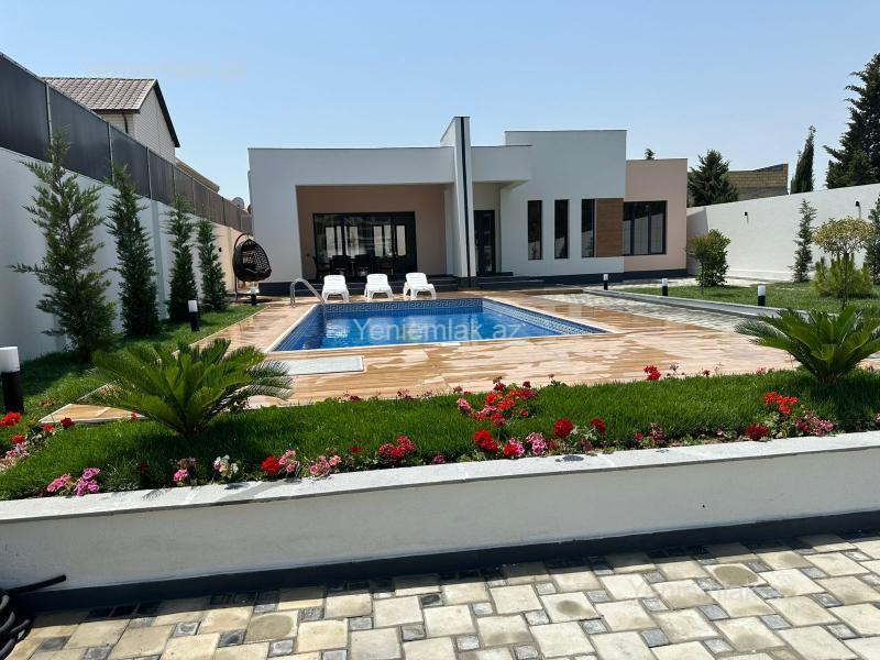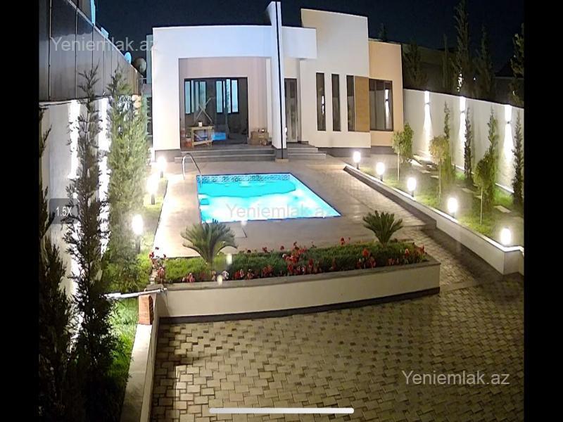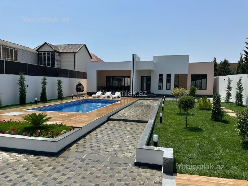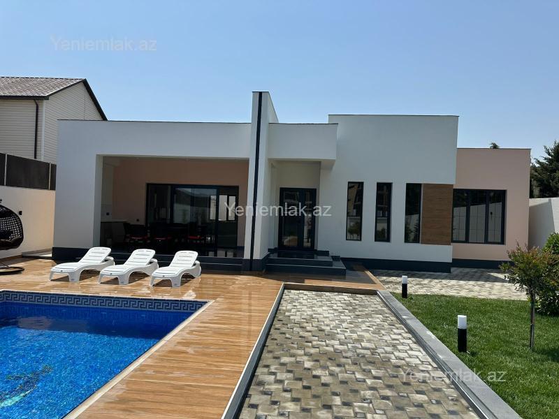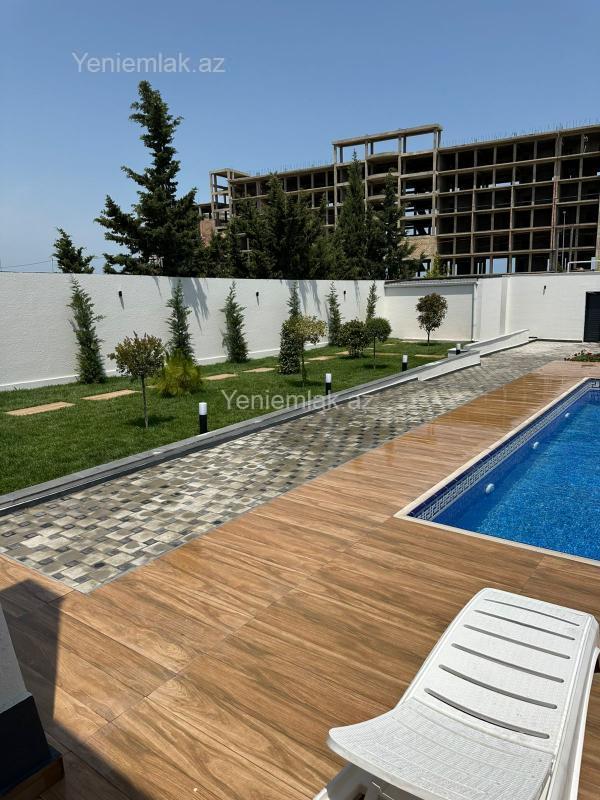 Bağ evi, Modern stildə, yüksək keyfiyyəli materiallar ilə tikilmişdir. Döşəmə, tavan, kolonlar betondur. Həyətdə dekorativ ağaclar, qazon, baseyn, kamera sistemi, avtomatik jalüz darvaza, geniş küçə, dənizə çox yaxın. Evdə Zal studio mətbəx, 3 ədəd yataq otağı, qarderob otağı, 2 sanitar qovşağı, açıq terras, yay mətbəxi, mətbəx mebeli, kombi sistemi, isti döşəmə, keyfiyyətli materiallar istifadə edilib. Ev şəxsi istifadə üçün tikilib.