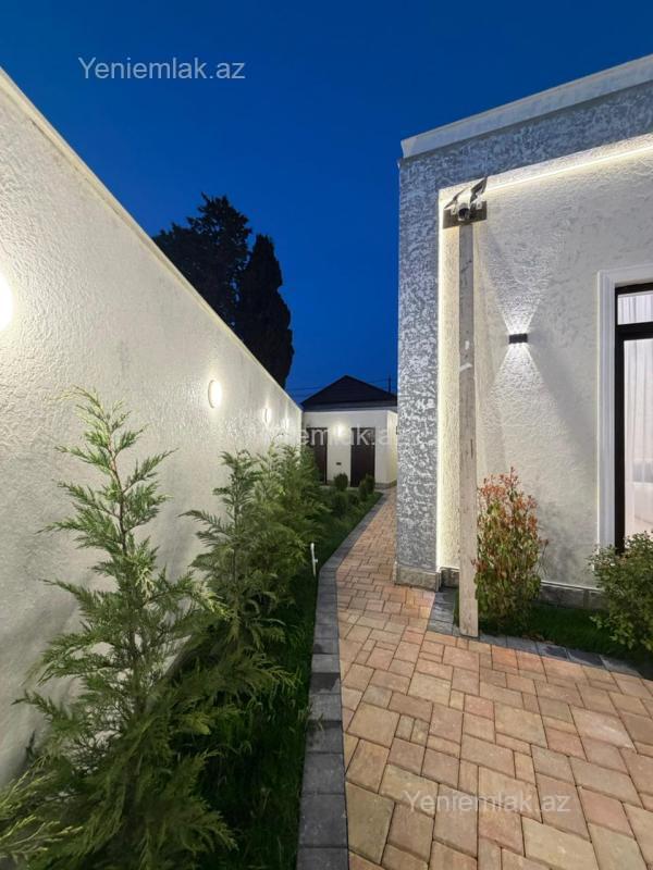 EWYALARI ILE!!!! Xezer rayonu Merdekan qesebesi 3 sot torpaq sahesinde 1 mertebeli 150 kvm bag evi satılir. holl ,1 zal ,metbext, 3 yataq otagi,2 sanuzeli movcuddur.Heyetinde hovuz,bisetka ,manqalni, 2 masinli parking, sanuzeli ,iwiqlandirma sistemi,dekorativ ağaclar , distansiyonu qapisi var. Qazi ,işığı ,suyu daimidir.Sendler tam qaydasındadır.( Kupça)