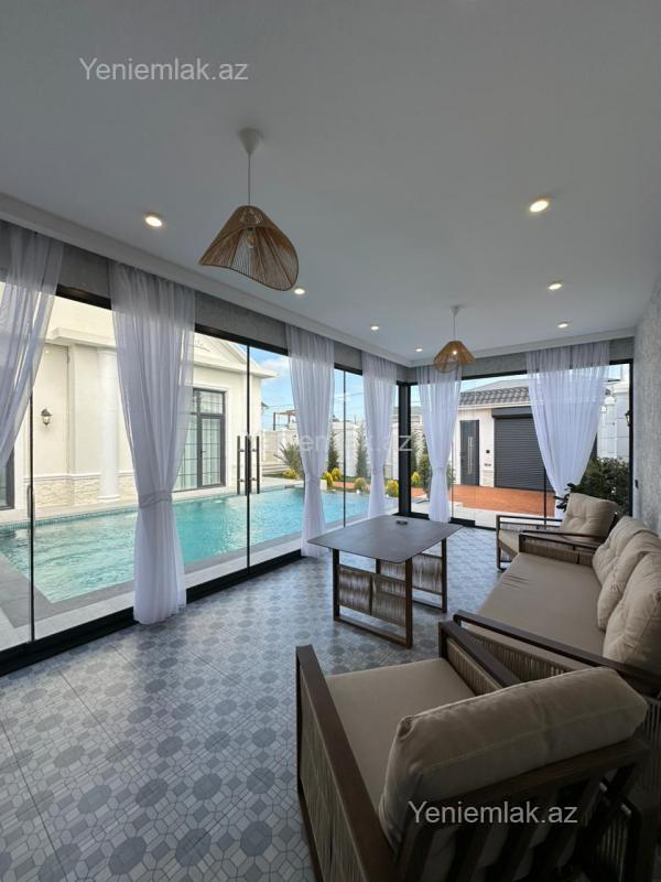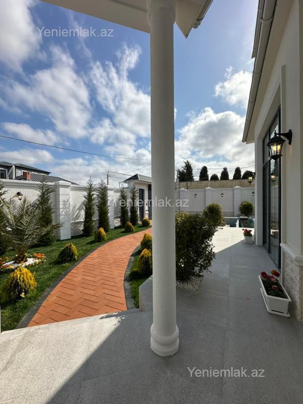 Mərdəkan bağlarında 5.1 Sotda 1 mərtəbə 210 kv.m 4 otaqlı, super bağ evini təklif edirik. Bağ evi zal, mətbəx, 3 yataq otağı, holl və sanuzeldən ibarətdir. Otaqlarda asılmış pərdə və lyüsturları, hündür tavanları, mətbəx mebeli, duş kabinalı sanuzeli, quraşdırılmış işıqlandırma sistemi var. Ev yüksək zövq və keyfiyyətlə təmir olunub. Su, qaz, işıq daimidir. İstilik sistemi kombidir, isti döşəməsi var. Həyətində geniş filterli hovuzu, maşın saxlamaq üçün yer, pultla idarə olunan darvaza, dekorativ ağacları və gülləri, su anbarı, sensorlu gecə işıqları var. 4 mövsüm yaşamaq üçün əlverişlidir. Yolu qapıya kimi asfaltdır. Kupçası (Çıxarışı) var.