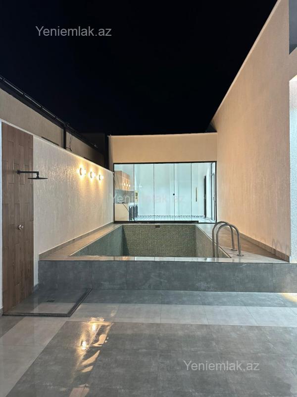 Mərdəkan bağlarında 3 Sotda 1 mərtəbə 160 kv.m 4 otaqlı super bağ evini təklif edirik. Bağ evi zal, mətbəx,qış mətbəxi, 3 yataq otağı, holl və sanuzeldən ibarətdir. Otaqlarda asılmış pərdə və lyüsturları, hündür tavanları, mətbəx mebeli, duş kabinalı sanuzeli, quraşdırılmış işıqlandırma sistemi var. Ev yüksək zövq və keyfiyyətlə təmir olunub. Su, qaz, işıq daimidir. İstilik sistemi kombidir, isti döşəməsi var. Həyətində geniş filterli hovuzu, maşın saxlamaq üçün yer, pultla idarə olunan darvaza, dekorativ ağacları və gülləri, su anbarı, sensorlu gecə işıqları var. 4 mövsüm yaşamaq üçün əlverişlidir. Yolu qapıya kimi asfaltdır. Kupçası (Çıxarışı) var.