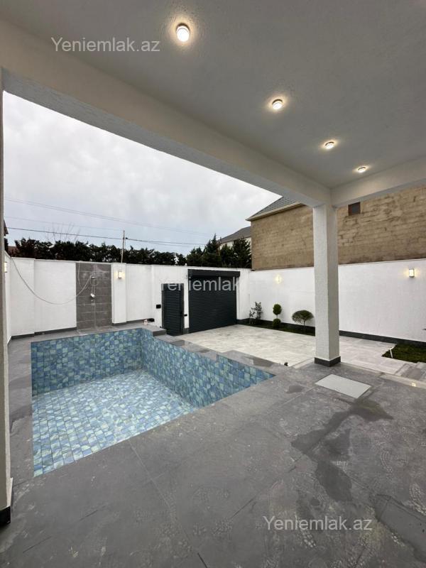 Mərdəkan bağlarında 3 Sotda 1 mərtəbə 190 kv.m 4 otaqlı super bağ evini təklif edirik. Bağ evi zal, mətbəx, 3 yataq otağı, holl və sanuzeldən ibarətdir. Otaqlarda asılmış pərdə və lyüsturları, hündür tavanları, mətbəx mebeli, duş kabinalı sanuzeli, quraşdırılmış işıqlandırma sistemi var. Ev yüksək zövq və keyfiyyətlə təmir olunub. Su, qaz, işıq daimidir. İstilik sistemi kombidir, isti döşəməsi var. Həyətində geniş filterli hovuzu, manqalxana, maşın saxlamaq üçün yer, pultla idarə olunan darvaza, dekorativ ağacları və gülləri, su anbarı, sensorlu gecə işıqları var. 4 mövsüm yaşamaq üçün əlverişlidir. Yolu qapıya kimi asfaltdır. Kupçası (Çıxarışı) var.