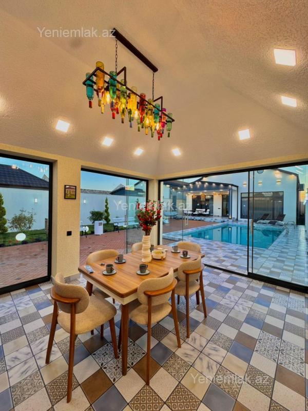 Tam Əşyalı!! Sizə ekoloji təmiz Şüvəlan qəsəbəsində 5 Sotda 1 mərtəbə 180 kv.m 4 otaqlı super bağ evini təklif edirik. Bağ evi zal, mətbəx, 3 yataq otağı, holl və 3 sanuzeldən ibarətdir. Otaqlarda asılmış pərdə və lyüsturları, mebelləri, divar rəsmləri, hündür tavanları, duş kabinalı sanuzeli, mebelli mətbəxi, quraşdırılmış işıqlandırma sistemi var. Ev yüksək zövq və keyfiyyətlə təmir olunub. Su, qaz, işıq daimidir. İstilik sistemi kombidir, isti döşəməsi var. Həyətində geniş filterli hovuzu, şəlaləsi, lejankaları, cambalkon besedka, stol-stulu, manqalxana, yay-qış mətbəxi, maşın saxlamaq üçün yer, pultla idarə olunan darvaza, dekorativ ağacları və gülləri, su anbarı, sensorlu gecə işıqları var. 4 mövsüm yaşamaq üçün əlverişlidir. Yolu qapıya kimi asfaltdır. Kupçası (Çıxarışı) var. Start qiyməti 345 000 AZN.