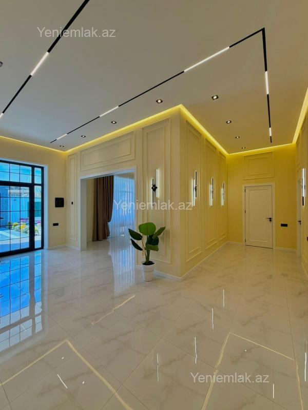 Tam Əşyalı!! Sizə ekoloji təmiz Şüvəlan qəsəbəsində 4 Sotda 1 mərtəbə 190 kv.m 4 otaqlı super bağ evini təklif edirik. Bağ evi zal, mətbəx, 3 yataq otağı, holl və 2 sanuzeldən ibarətdir. Otaqlarda asılmış pərdə və lyüsturları, divar rəsmləri, tv, hündür tavanları, mebelli mətbəxi, duş kabinalı sanuzeli, quraşdırılmış işıqlandırma sistemi var. Ev yüksək zövq və keyfiyyətlə təmir olunub. Su, qaz, işıq daimidir. İstilik sistemi kombidir, isti döşəməsi var. Həyətində geniş filterli hovuzu, şəlaləsi, manqalxana, maşın saxlamaq üçün yer, besedka, pultla idarə olunan darvaza, dekorativ ağacları və gülləri, su anbarı, sensorlu gecə işıqları var. 4 mövsüm yaşamaq üçün əlverişlidir. Yolu qapıya kimi asfaltdır. Kupçası (Çıxarışı) var. Start qiyməti 393 000 AZN.