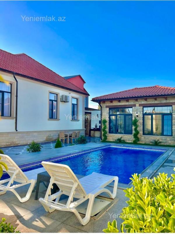 Shexsi evdir! Xezer rayonu Merdekan qesebesinde, Makaronnu adlanan yerde, 28 may kucesinde 6.5 sotda, Esas yoldan 50 m iceride., Erazini taniyanlar bilecek nece yerdir, Ev sexsi istifade ucun tikilib, her sey yuksek seviyede edilib baxan bilecek. -VILLA--TOSCANA- stilinde tikilmisdir . Heyetinda filterli hovuzu, manqali, besedkasi, sanitar govshagi, Travertin dashlari ile ortulub Ev tam monolit beton, asagi ve yuxarisi.. -Tam kiremit - Dam ortuyu, demir deyil -Tam eshyali formada, Mebel ve texnikalar -Parket pol, isti pol, otaglarda kondisonerler. -Elave zirzemiside movcuddur.. -Kombi istilik sistemi+elektrik su gizdirma.. -Kamera sistemi, Pultla idare olunan daravaza,.. -Sensor gece-gunduz isiglanma.. -Senedler tam gaydasindadir..(Paket sened,Kupca, torpagin ve evin -REAL musteriye ile danismaq olar, Barter variantlarinida deyerlendirmek olar! Sexsi evdir.