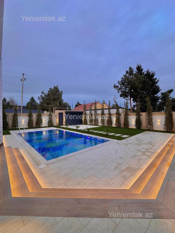 Sizə ekoloji təmiz Mərdəkan qəsəbəsində 7.2 Sotda 1 mərtəbə 250 kv.m 5 otaqlı super bağ evini təklif edirik. Bağ evi zal, mətbəx, 4 yataq otağı, holl və 4 sanuzeldən ibarətdir. Otaqlarda asılmış pərdə və lyüsturları, hündür tavanları, mebelli mətbəxi, duş kabinalı sanuzeli, quraşdırılmış işıqlandırma sistemi var. Ev yüksək zövq və keyfiyyətlə təmir olunub. Su, qaz, işıq daimidir. İstilik sistemi kombidir, isti döşəməsi var. Həyətində geniş filterli hovuzu, manqalxana, maşın saxlamaq üçün yer, besedka, pultla idarə olunan darvaza, dekorativ ağacları və gülləri, su anbarı, sensorlu gecə işıqları var. 4 mövsüm yaşamaq üçün əlverişlidir. Yolu qapıya kimi asfaltdır. Kupçası (Çıxarışı) var.
