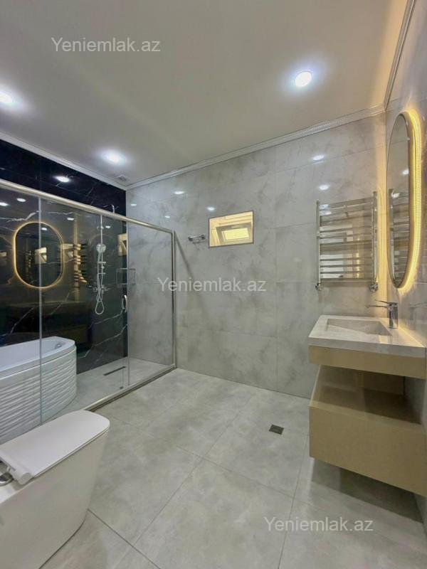 Sizə ekoloji təmiz Mərdəkan qəsəbəsində 6 Sotda 2 mərtəbə 300 kv.m 5 otaqlı super bağ evini təklif edirik. Bağ evi zal, mətbəx, 4 yataq otağı, qarderob, holl və 3 sanuzeldən ibarətdir. Otaqlarda asılmış pərdə və lyüsturları, hündür tavanları, duş kabinalı sanuzeli, quraşdırılmış işıqlandırma sistemi var. Ev yüksək zövq və keyfiyyətlə təmir olunub. Su, qaz, işıq daimidir. İstilik sistemi kombidir, isti döşəməsi var. Həyətində geniş filterli hovuzu, şəlaləsi, barbekü zona, maşın saxlamaq üçün yer, lejankalar, mebelli cambalkon besedka, yay-qış mətbəxi, pultla idarə olunan darvaza, dekorativ ağacları və gülləri, su anbarı, sensorlu gecə işıqları var. 4 mövsüm yaşamaq üçün əlverişlidir. Yolu qapıya kimi asfaltdır. Kupçası (Çıxarışı) var. Start qiyməti 555 000 AZN.