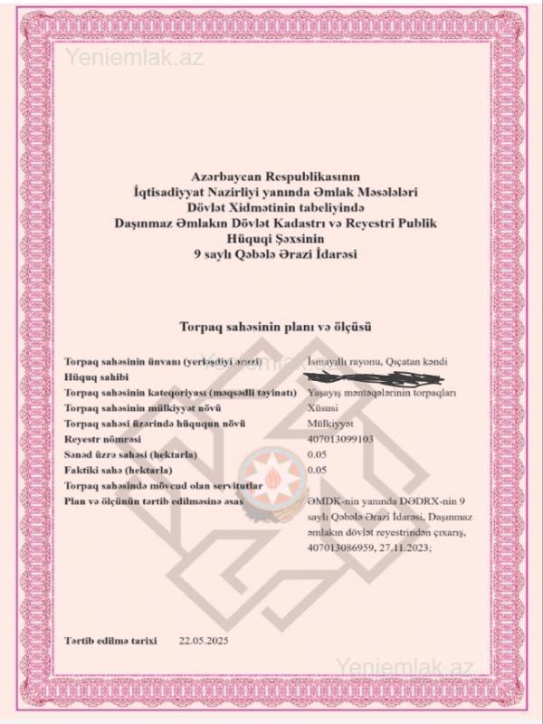 -İsmayıllı rayonu, Basqal qəsəbəsinin yaxınlığındakı Qıçatan kəndində 5 sot çıxarışlı torpaq satılır. Basqal Resortdan kənd görünür, 1 km asfalt məsafəsindədir. -Torpaq düz kəndin girəcəyindədir. Kəndin girəcəyinə qədər asfaltdır. - Torpaq tikinti təyinatlıdır. Dağlara gözəl mənzərəsi var. -Ərazidə şəhər əhalisi çoxlu, yeni evlər tikir. Yəni, ərazi hərtərəfli əlverişlidir. İndi qışdır, qiymətlər ucuzdur. Bir azdan hər yer yaşıllaşsa qalxacaq. Həm də tunelin tikintisi bitsə, bura elə Bakının qiymətinə olacaq. -Qiymət sota aiddir. Qiymətdə razılaşma olacaq. Azər