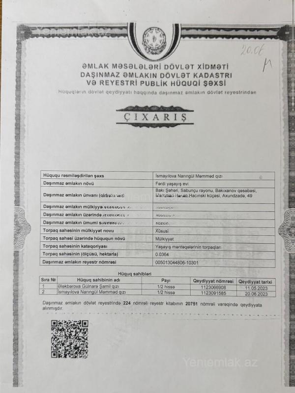Satılır: 5 sot torpaq sahəsi – Bakıxanov qəsəbəsi Bakı şəhəri, Sabunçu rayonu, Bakıxanov qəsəbəsində, Məmməd Həsən Hacınski küçəsi ilə Axundzadə küçəsinin (Axundzadə 49) kəsişməsində yerləşən 5 sot tam sənədli torpaq sahəsi satışa çıxarılıb. Torpaq sahəsi düz magistral yolun kənarında, yüksək gediş-gəlişə malik, son dərəcə perspektivli və inkişaf edən ərazidə yerləşir. Bu xüsusiyyətlər onu həm yaşayış, həm də kommersiya məqsədli layihələr üçün ideal edir. Həyətdə hazırda 2 ədəd kiçik həyət evi mövcuddur. İstəyə uyğun olaraq mövcud tikililərdən istifadə etmək və ya sökərək ərazidə obyekt, fərdi yaşayış evi, apartman binası, mağaza, ofis, klinika, iaşə obyekti və digər istənilən biznes layihəsini rahatlıqla inşa etmək mümkündür. Ərazinin Qara Qarayev metro stansiyasına yaxın məsafədə yerləşməsi, eləcə də əsas yol üzərində olması torpağın kommersiya və investisiya dəyərini xeyli artırır. Ətrafda yaşayış evləri, obyektlər, ictimai nəqliyyat dayanacaqları və digər infrastrukturlar mövcuddur. ? Üstünlüklər: Tam sənədli torpaq sahəsi Magistral yol kənarı Yüksək gediş-gəlişli və perspektivli ərazi Kommersiya və yaşayış üçün yararlı Qara Qarayev metrosuna yaxın Ofis haqqı: 1% Ətraflı məlumat və baxış üçün zəng edin.